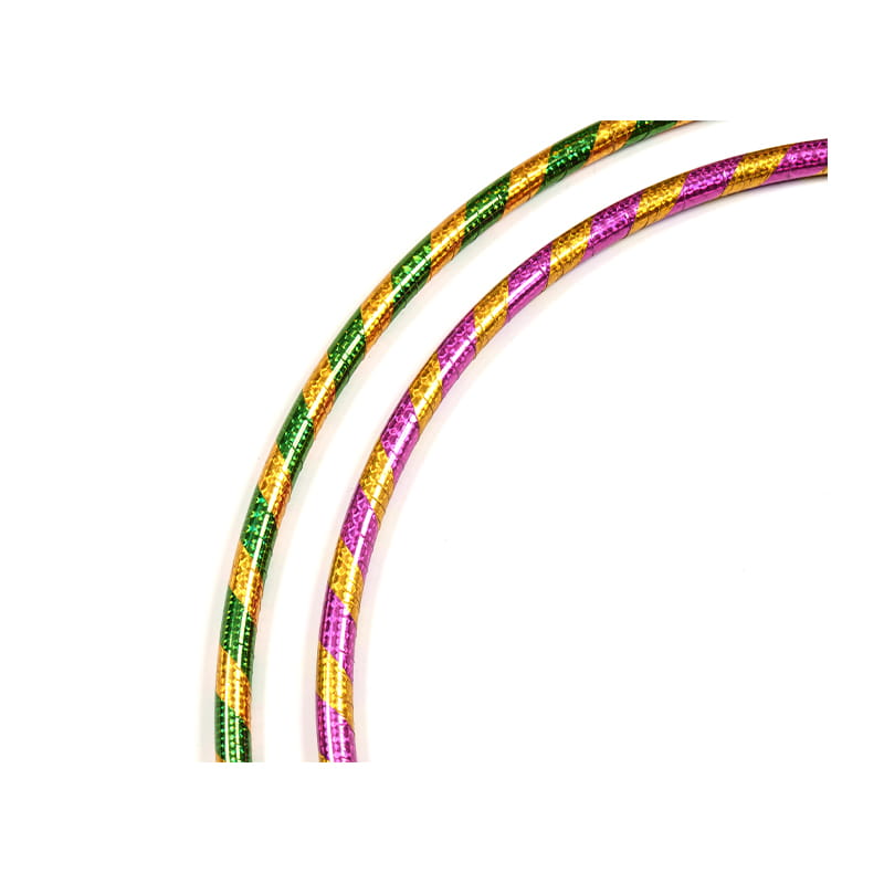 Tá fonsa Hula Laser dhá-dhath na bpáistí seo déanta as feadánra PE atá neamhdhíobhálach don chomhshaol mar chnámharlach láidir agus durable, fillte timpeall ar scannán uathúil léasair dhá dhath. Tá dromchla an scannáin fite fuaite le stríocaí corcra, glas agus óir, atá ildaite agus lán de ghluaisne. Tá an dá fonsa hula i méideanna difriúla chun freastal ar riachtanais leanaí aoiseanna éagsúla, níos faiseanta agus níos fuinniúla. Ní hamháin gur comhpháirtí maith é an fonsa hula seo do leanaí le feidhmiú, ach is fearr é freisin do thuismitheoirí agus do leanaí idirghníomhú agus sonas a roinnt agus a roinnt.